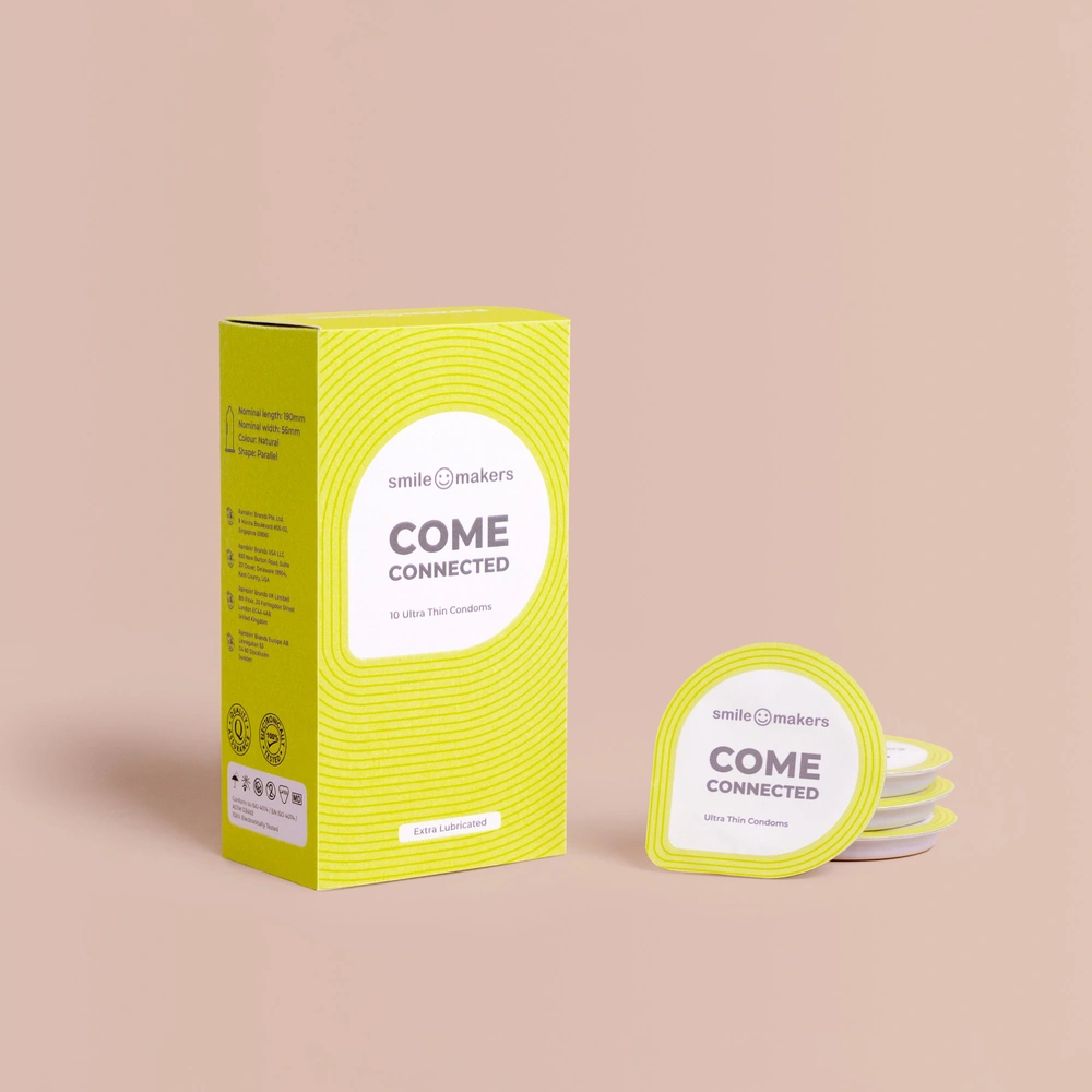 Safe sex just got sexier. Come Connected condoms are ultra-thin for heightened sensitivity and a natural feel, featuring a clever buttercup peel wrapper and intuitive roll-on design for stress-free application. Extra lubrication boosts pleasure and protection, while a pH-friendly formula keeps things comfortable. Made from 100% natural rubber latex, they’re free from spermicide, parabens, flavouring, and colouring — vegan, cruelty-free, and even biodegradable.